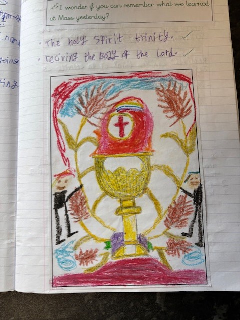 As a 'School of Faith' our children are taught about God’s love; they learn about their Christian responsibilities; children are provided with experiences of church and Catholic and Christian traditions. The children are encouraged to express their own faith and to be respectful and understanding of people and traditions from other faith backgrounds. RE lessons will be faith-filled, enjoyable lessons where each child feels they belong to our school community. The use of religious vocabulary is used in all lessons by both the adults and children. Through discussion, challenge and talking partners the children develop a deeper understanding.
